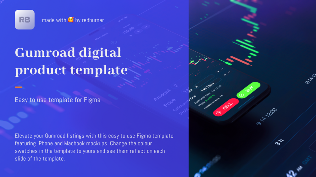 You don't have to be a designer to have a pro-looking listing on your Gumroad. Elevate your Gumroad listings with this easy-to-use Figma template featuring iPhone and Macbook mockups. Change the colour swatches in the template to yours and see them reflect on each slide of the template.
